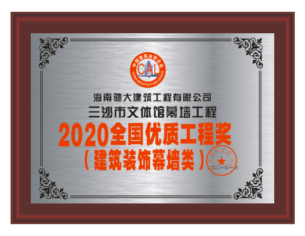 當(dāng)前位置:HOME > 資質(zhì)榮譽(yù) > 2020全國優(yōu)質(zhì)工程獎 三沙市文體館幕墻工程